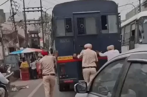 अमृतसर  , (PNL) : अमृतसर के छब्बाल रोड पर उस समय एक असामान्य और चौंकाने वाला नजारा देखने को मिला, जब कैदियों को अदालत में पेशी के लिए ले जा रही एक जेल वैन अचानक बीच रास्ते में खराब हो गई। वैन में कैदियों की मौजूदगी के कारण स्थिति और भी संवेदनशील हो गई। मौके पर मौजूद पुलिसकर्मियों ने तुरंत वैन को सड़क से हटाने और आगे बढ़ाने की कोशिश की। इसी दौरान पुलिसकर्मियों को वैन को हाथ से धक्का लगाते हुए देखा गया। यह पूरा घटनाक्रम किसी ने मोबाइल में रिकॉर्ड कर लिया और वीडियो सोशल मीडिया पर वायरल हो गया।