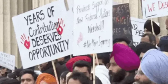 न्यूज डेस्क, (PNL) : कनाडा में नया इमिग्रेशन बिल पास होने के बाद 9 हजार पंजाबियों पर डिपोर्टेशन की तलवार लटक गई है। इमिग्रेशन डिपार्टमेंट ने C-12 बिल पास होने के बाद 30 हजार शरणार्थियों को नोटिस जारी किए हैं। नए बिल में शरणार्थियों की मान्यता खत्म कर दी गई है। इसके विरोध में पंजाबी स्टूडेंट्स सहित अन्य देशों के छात्रों ने विनिपेग में 17 अप्रैल को प्रदर्शन किया और सरकार से वर्क परमिट खत्म न करने और डिपोर्टेशन न करने की मांग की। पंजाब से सालाना डेढ़ लाख स्टूडेंट्स कनाडा के कॉलेजों में एडमिशन लेते हैं। कोर्स पूरा होने पर इनको वर्क परमिट मिलता है। वर्क परमिट खत्म होने पर ये शरणार्थी के लिए अप्लाई करते और सालों तक काम करते रहते थे। लेकिन अब इन्हें 1 साल में अप्लाई करना होगा, नहीं तो डिपोर्ट हो सकते हैं।कनाडा सरकार की तरफ से वर्क परमिट खत्म हो चुके और शरणार्थी के तौर पर रह रहे स्टूडेंट्स को दिए नोटिस में कहा है कि वो आपनी अयोग्यता का आधार स्पष्ट करें।