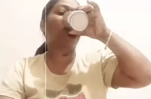 जहर निगलने से पहले बोतल दिखाती महिला।