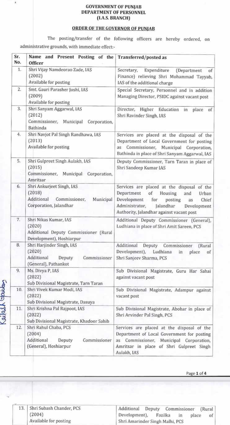 पंजाब में 49 IAS/PCS अधिकारियों का तबादला, देखें लिस्ट Punjab News Live -PNL September 25, 2024 चंडीगढ़, ताजा खबर, पंजाब, होम Leave a comment Related Articles आम आदमी पार्टी जालंधर सेंट्रल के इंचार्ज नितिन कोहली ने पीएपी हेलिपैड पर मुख्यमंत्री भगवंत मान का किया स्वागत January 11, 2026 लुधियाना पहुंचे हरियाणा CM नायब सैनी, गुरुद्वारा श्री चरण कंवल साहिब में माथा टेका, फिर रैली को करेंगे संबोधित, पढ़ें January 11, 2026 पंजाब में 12 जनवरी को नहीं लगेगा टोल, फ्री में कर सकेंगे क्रास, जानें क्यों January 11, 2026 Share Facebook Twitter Stumbleupon LinkedIn Pinterest