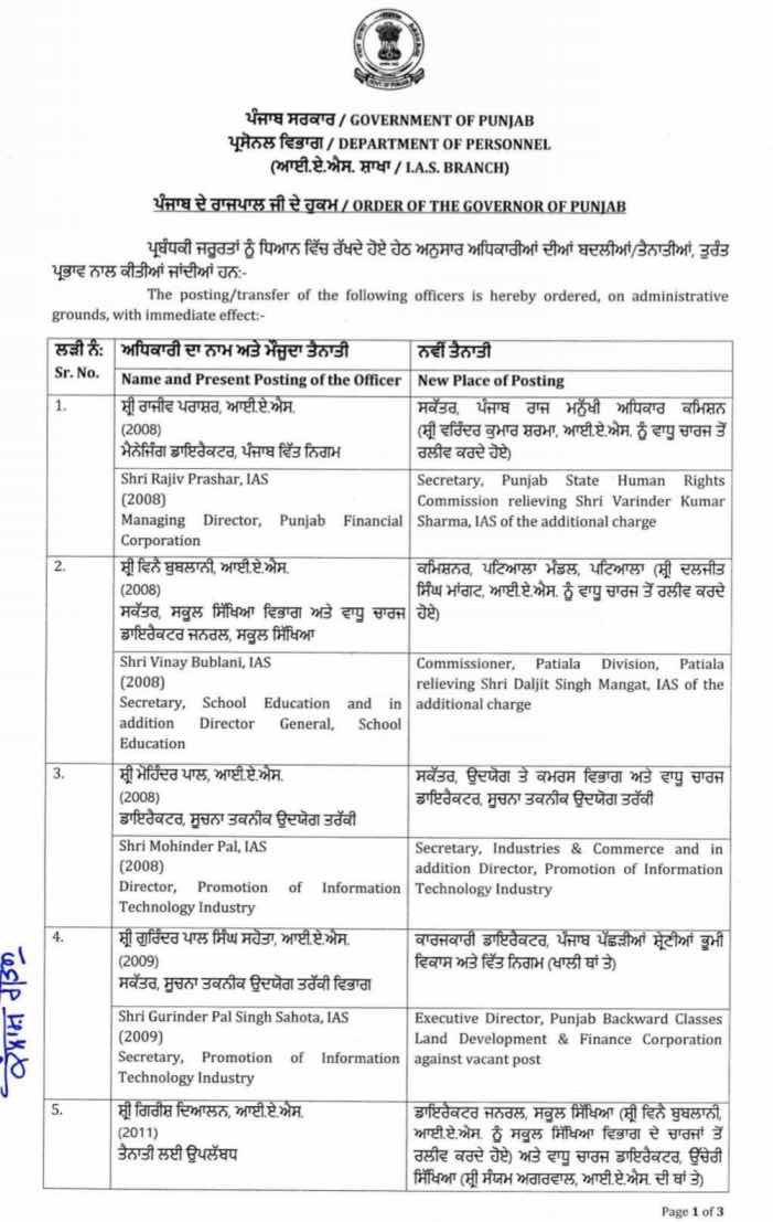 पंजाब में 7 IAS/PCS अधिकारियों का तबादला, गिरीश दयालन और जतिंदर जोरवाल को मिली अहम जिम्मेदारी, देखें लिस्ट Punjab News Live -PNL April 23, 2025 चंडीगढ़, ताजा खबर, पंजाब, होम Leave a comment Related Articles नितिन कोहली का बड़ा तोहफ़ा : सूर्य एन्क्लेव और महाराजा रणजीत सिंह एवेन्यू जल्द नगर निगम को सौंपे जाएंगे October 8, 2025 बड़ी खबर : पंजाब पुलिस में DSP स्तर के 133 पुलिस अधिकारियों का तबादला, देखें लिस्ट October 8, 2025 जालंधर : स्व. हकीम तिलक राज कपूर के बेटे हरीश कपूर की रस्म किरया आज, पढ़ें October 8, 2025 Share Facebook Twitter Stumbleupon LinkedIn Pinterest