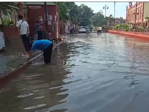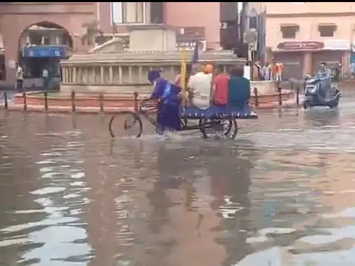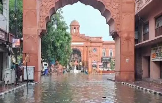 अमृतसर, (PNL) : गुरु नगरी अमृतसर में आज हुई एक घंटे की बारिश के बाद हेरिटेज स्ट्रीट के हालात डूबने के जैसे हो गए हैं। यह वही रास्ता है जहां से रोजाना लाखों श्रद्धालू गोल्डन टेंपल में माथा टेकने के लिए जाते हैं।