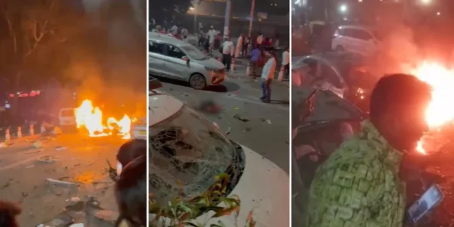 नई दिल्ली, (PNL) : दिल्ली के लाल किला मेट्रो स्टेशन के गेट नंबर-1 के पास सोमवार शाम को 6 बजकर 55 मिनट पर पार्किंग में खड़ी एक कार में धमाका हो गया। ब्लास्ट के बाद आग इतनी तेजी से फैली कि आसपास खड़ी तीन और गाड़ियां भी जल गईं। धमाके में 8 लोगों की मौत हो गई। 24 घायल हैं। ब्लास्ट की वजह अभी साफ नहीं है। न्यूज एजेंसी ANI के मुताबिक, कई घायलों को LNJP अस्पताल ले जाया गया है। पुलिस ने पूरे इलाके को घेर लिया है और फॉरेंसिक टीम घटनास्थल पर मौजूद है। आसपास के CCTV फुटेज खंगाले जा रहे हैं। दिल्ली, मुंबई, हरियाणा और यूपी में हाई अलर्ट जारी किया गया है।
