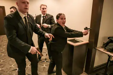जब मुझे लगा कि अब उठना सुरक्षित है, तो मैंने देखा कि सुरक्षाकर्मी लंबी बंदूकें लिए मंच पर खड़े थे। अमेरिकी राष्ट्रपति को बाहर ले जाया जा चुका था। स्कॉट बेसेंट, काश पटेल, पीट हेगसेथ, विटकॉफ समेत उनके सभी कैबिनेट सदस्यों को एक-एक करके बाहर ले जाया गया। कार्यक्रम जल्द ही फिर से शुरू होने वाला है, यही घोषणा की गई है।