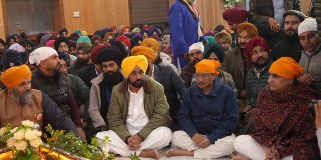 श्रीनगर, (PNL) : पंजाब के मुख्यमंत्री भगवंत सिंह मान और ‘आप’ के राष्ट्रीय संयोजक अरविंद केजरीवाल आज यहां गुरुद्वारा छेवीं पातशाही में राज्य सरकार द्वारा श्री गुरु तेग बहादुर जी के 350वें शहीदी दिवस के अवसर पर आयोजित कीर्तन दरबार में सिख संगत के साथ शामिल हुए। इस मौके पर कैबिनेट मंत्री मोहिंदर भगत, आप के महासचिव दीपक बाली और विधायक कुलदीप सिंह धालीवाल भी मौजूद रहे।