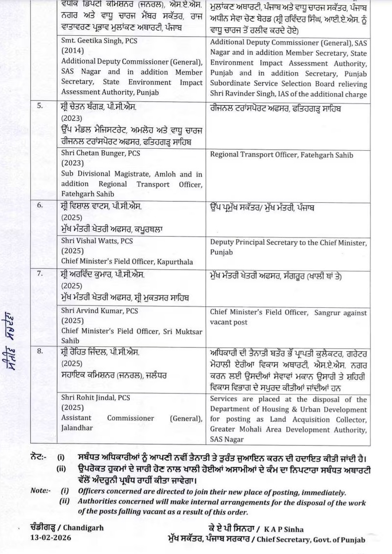 पंजाब में IAS/PCS अधिकारियों के हुए तबादले, देखें लिस्ट