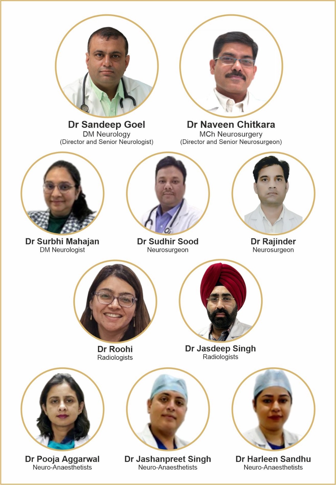 •डॉ . नवीन चितकारा (एमसीएच न्यूरोसर्जरी ) – 30 साल से अधिक अनुभव वाले कुशल न्यूरोसर्जन। अपनी सर्जिकल विशेषज्ञता से मरीजों को जीवनदान देने में अहम भूमिका निभा रहे हैं।