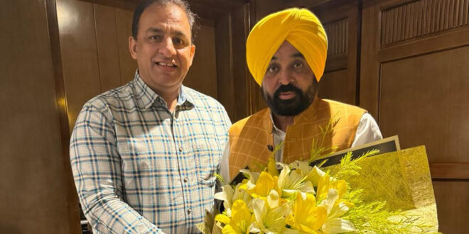 जालंधर, (PNL) : हॉकी इंडिया के उपाध्यक्ष और जालंधर सेंट्रल हलका इंचार्ज, नितिन कोहली ने शनिवार को चंडीगढ़ में पंजाब के मुख्यमंत्री भगवंत सिंह मान से उनके आधिकारिक आवास पर भेंट की। नितिन कोहली, जो कि हॉकी पंजाब के अध्यक्ष भी हैं, ने सीएम मान को 27 सितंबर को जालंधर के सुरजीत हॉकी स्टेडियम में आयोजित पंजाब हॉकी लीग (PHL) के ग्रेंड फिनाले (फाइनल) में शामिल होने के लिए आमंत्रित किया।